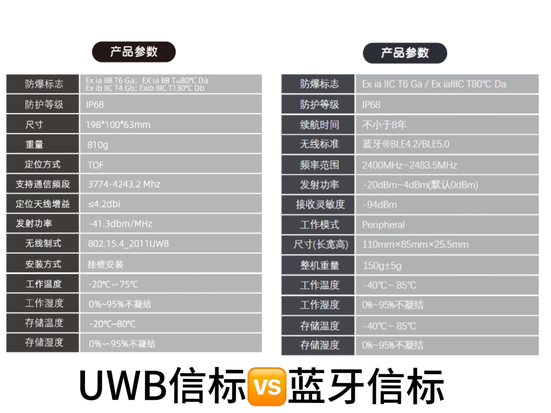 UWB信標(biāo)和藍牙信標(biāo)的產(chǎn)品參數(shù)對比: